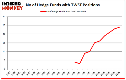 Twist Bioscience Corporation (NASDAQ:TWST) has seen an increase in hedge fund interest of late. Twist Bioscience Corporation (NASDAQ:TWST) was in 24 hedge funds’ portfolios at the end of the first quarter of 2021. The all time high for this statistic was previously 23. This means the bullish number of hedge fund positions in this stock currently sits at its all time high. There were 23 hedge funds in our database with TWST positions at the end of the fourth quarter. Our calculations also showed that TWST isn’t among the 30 most popular stocks among hedge funds (click for Q1 rankings).