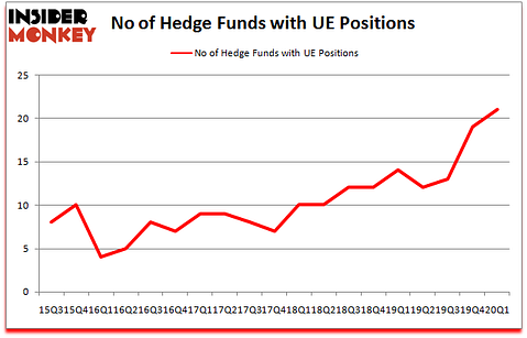 At the end of the first quarter, a total of 21 of the hedge funds tracked by Insider Monkey were bullish on this stock, a change of 11% from one quarter earlier. The graph below displays the number of hedge funds with bullish position in UE over the last 18 quarters. So, let’s find out which hedge funds were among the top holders of the stock and which hedge funds were making big moves.