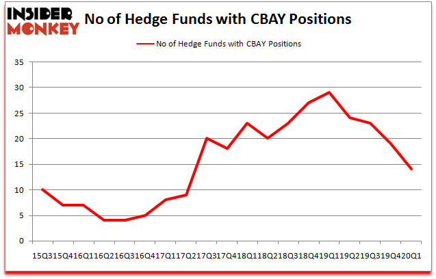At Q1’s end, a total of 14 of the hedge funds tracked by Insider Monkey held long positions in this stock, a change of -26% from the fourth quarter of 2019. On the other hand, there were a total of 29 hedge funds with a bullish position in CBAY a year ago. So, let’s check out which hedge funds were among the top holders of the stock and which hedge funds were making big moves.