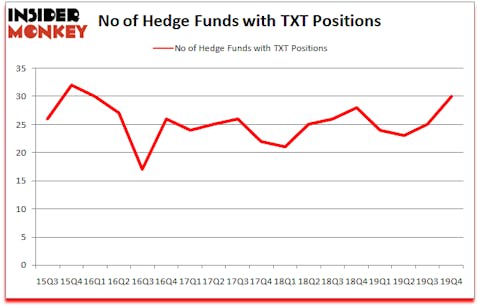Textron Inc. (NYSE:TXT) was in 30 hedge funds’ portfolios at the end of the fourth quarter of 2019. TXT investors should be aware of an increase in enthusiasm from smart money recently. There were 25 hedge funds in our database with TXT holdings at the end of the previous quarter. Our calculations also showed that TXT isn’t among the 30 most popular stocks among hedge funds (click for Q4 rankings and see the video at the end of this article for Q3 rankings).