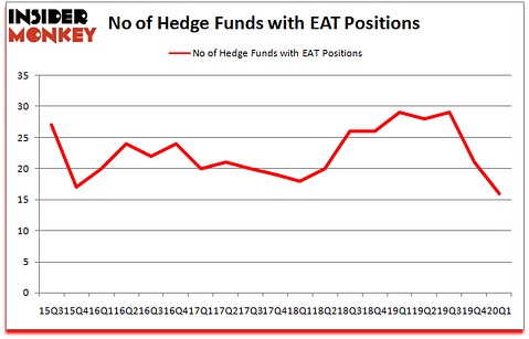 At Q1’s end, a total of 16 of the hedge funds tracked by Insider Monkey were bullish on this stock, a change of -24% from the previous quarter. On the other hand, there were a total of 29 hedge funds with a bullish position in EAT a year ago. With hedge funds’ capital changing hands, there exists a select group of noteworthy hedge fund managers who were upping their holdings meaningfully (or already accumulated large positions).