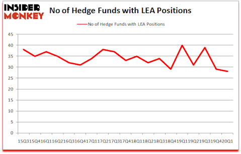 Lear Corporation (NYSE:LEA) was in 28 hedge funds’ portfolios at the end of March. LEA has experienced a decrease in support from the world’s most elite money managers recently. There were 29 hedge funds in our database with LEA holdings at the end of the previous quarter. Our calculations also showed that LEA isn’t among the 30 most popular stocks among hedge funds (click for Q1 rankings and see the video for a quick look at the top 5 stocks).