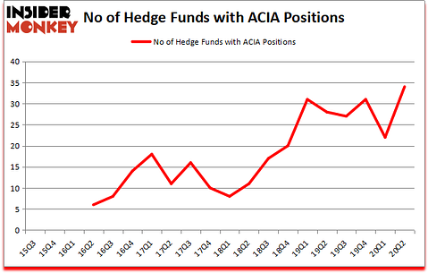 Heading into the third quarter of 2020, a total of 34 of the hedge funds tracked by Insider Monkey held long positions in this stock, a change of 55% from one quarter earlier. The graph below displays the number of hedge funds with bullish position in ACIA over the last 20 quarters. So, let’s check out which hedge funds were among the top holders of the stock and which hedge funds were making big moves.
