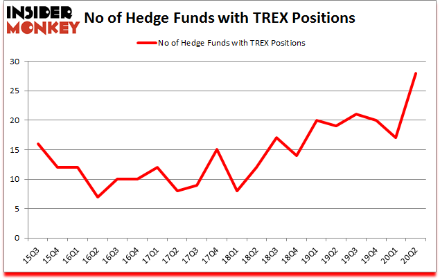 At the end of June, a total of 28 of the hedge funds tracked by Insider Monkey were bullish on this stock, a change of 65% from one quarter earlier. Below, you can check out the change in hedge fund sentiment towards TREX over the last 20 quarters. So, let’s review which hedge funds were among the top holders of the stock and which hedge funds were making big moves.
