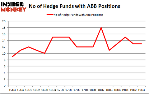 ABB Ltd (NYSE:ABB) shares haven’t seen a lot of action during the third quarter. Overall, hedge fund sentiment was unchanged. The stock was in 13 hedge funds’ portfolios at the end of the third quarter of 2019. At the end of this article we will also compare ABB to other stocks including Koninklijke Philips NV (NYSE:PHG), UBS Group AG (NYSE:UBS), and Orange (NYSE:ORAN) to get a better sense of its popularity.