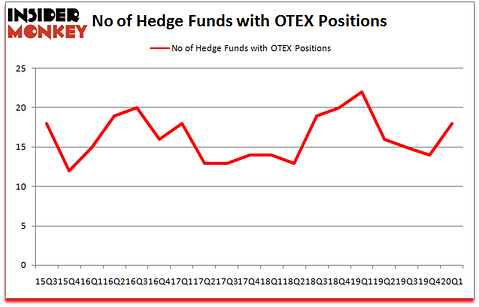Heading into the second quarter of 2020, a total of 18 of the hedge funds tracked by Insider Monkey held long positions in this stock, a change of 29% from the fourth quarter of 2019. The graph below displays the number of hedge funds with bullish position in OTEX over the last 18 quarters. With hedgies’ capital changing hands, there exists a select group of notable hedge fund managers who were boosting their holdings meaningfully (or already accumulated large positions).
