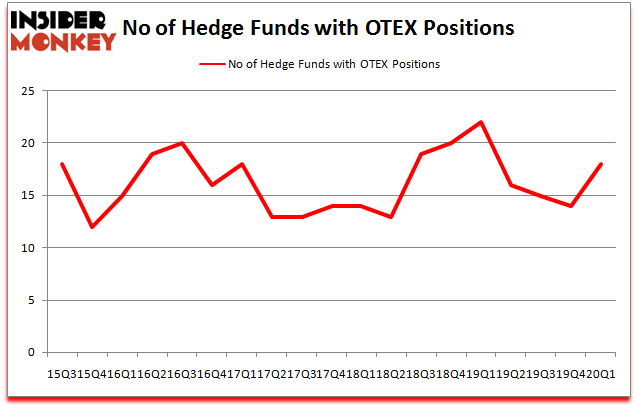 Heading into the second quarter of 2020, a total of 18 of the hedge funds tracked by Insider Monkey held long positions in this stock, a change of 29% from the fourth quarter of 2019. The graph below displays the number of hedge funds with bullish position in OTEX over the last 18 quarters. With hedgies’ capital changing hands, there exists a select group of notable hedge fund managers who were boosting their holdings meaningfully (or already accumulated large positions).