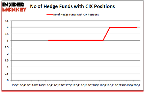 At Q1’s end, a total of 4 of the hedge funds tracked by Insider Monkey were long this stock, a change of 0% from the fourth quarter of 2019. By comparison, 4 hedge funds held shares or bullish call options in CIX a year ago. So, let’s find out which hedge funds were among the top holders of the stock and which hedge funds were making big moves.