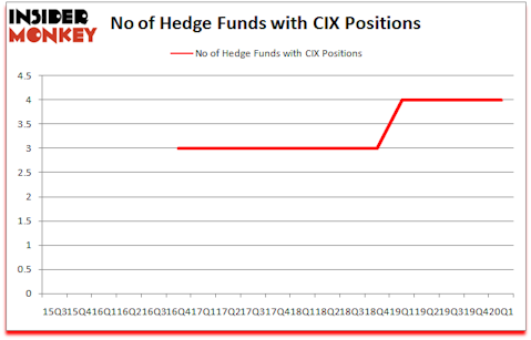 At Q1’s end, a total of 4 of the hedge funds tracked by Insider Monkey were long this stock, a change of 0% from the fourth quarter of 2019. By comparison, 4 hedge funds held shares or bullish call options in CIX a year ago. So, let’s find out which hedge funds were among the top holders of the stock and which hedge funds were making big moves.