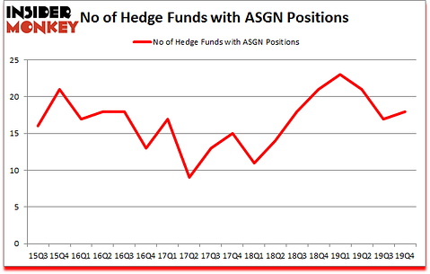 ASGN Incorporated (NYSE:ASGN) has experienced an increase in hedge fund interest lately. ASGN was in 18 hedge funds’ portfolios at the end of the fourth quarter of 2019. There were 17 hedge funds in our database with ASGN holdings at the end of the previous quarter. Our calculations also showed that ASGN isn’t among the 30 most popular stocks among hedge funds (click for Q4 rankings and see the video at the end of this article for Q3 rankings).