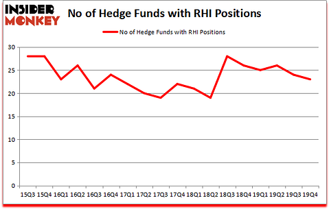 Robert Half International Inc. (NYSE:RHI) shareholders have witnessed a decrease in hedge fund sentiment of late. RHI was in 23 hedge funds’ portfolios at the end of the fourth quarter of 2019. There were 24 hedge funds in our database with RHI holdings at the end of the previous quarter. Our calculations also showed that RHI isn’t among the 30 most popular stocks among hedge funds (click for Q4 rankings and see the video at the end of this article for Q3 rankings).