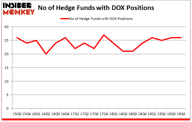 At Q4’s end, a total of 26 of the hedge funds tracked by Insider Monkey held long positions in this stock, a change of 0% from one quarter earlier. Below, you can check out the change in hedge fund sentiment towards DOX over the last 18 quarters. With hedge funds’ capital changing hands, there exists a few key hedge fund managers who were upping their holdings considerably (or already accumulated large positions).