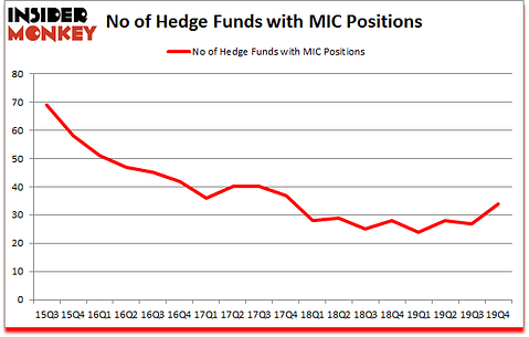 Heading into the first quarter of 2020, a total of 34 of the hedge funds tracked by Insider Monkey were long this stock, a change of 26% from the third quarter of 2019. Below, you can check out the change in hedge fund sentiment towards MIC over the last 18 quarters. So, let’s examine which hedge funds were among the top holders of the stock and which hedge funds were making big moves.