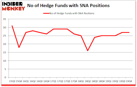 Heading into the first quarter of 2020, a total of 27 of the hedge funds tracked by Insider Monkey were bullish on this stock, a change of 0% from the previous quarter. Below, you can check out the change in hedge fund sentiment towards SNA over the last 18 quarters. So, let’s review which hedge funds were among the top holders of the stock and which hedge funds were making big moves.