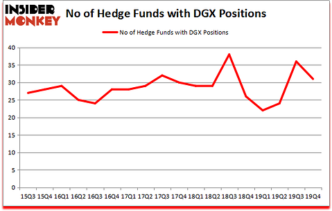 Quest Diagnostics Incorporated (NYSE:DGX) was in 31 hedge funds’ portfolios at the end of the fourth quarter of 2019. DGX has experienced a decrease in activity from the world’s largest hedge funds of late. There were 36 hedge funds in our database with DGX positions at the end of the previous quarter. Our calculations also showed that DGX isn’t among the 30 most popular stocks among hedge funds (click for Q4 rankings and see the video below for Q3 rankings).