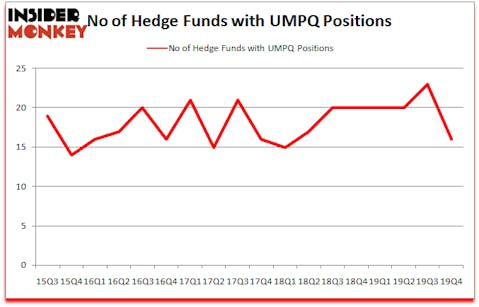 In these volatile markets we scrutinize hedge fund filings to get a reading on which direction each stock might be going. We at Insider Monkey have gone over 835 13F filings that hedge funds and prominent investors are required to file by the SEC The 13F filings show the funds’ and investors’ portfolio positions as of December 31st. In this article, we look at what those funds think of Umpqua Holdings Corp (NASDAQ:UMPQ) based on that data.