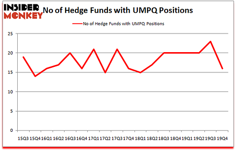 In these volatile markets we scrutinize hedge fund filings to get a reading on which direction each stock might be going. We at Insider Monkey have gone over 835 13F filings that hedge funds and prominent investors are required to file by the SEC The 13F filings show the funds’ and investors’ portfolio positions as of December 31st. In this article, we look at what those funds think of Umpqua Holdings Corp (NASDAQ:UMPQ) based on that data.