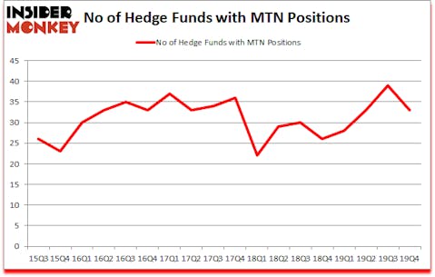 Vail Resorts, Inc. (NYSE:MTN) has experienced a decrease in enthusiasm from smart money lately. MTN was in 33 hedge funds’ portfolios at the end of December. There were 39 hedge funds in our database with MTN holdings at the end of the previous quarter. Our calculations also showed that MTN isn’t among the 30 most popular stocks among hedge funds (click for Q4 rankings and see the video at the end of this article for Q3 rankings).