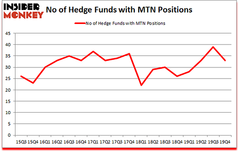 Vail Resorts, Inc. (NYSE:MTN) has experienced a decrease in enthusiasm from smart money lately. MTN was in 33 hedge funds’ portfolios at the end of December. There were 39 hedge funds in our database with MTN holdings at the end of the previous quarter. Our calculations also showed that MTN isn’t among the 30 most popular stocks among hedge funds (click for Q4 rankings and see the video at the end of this article for Q3 rankings).