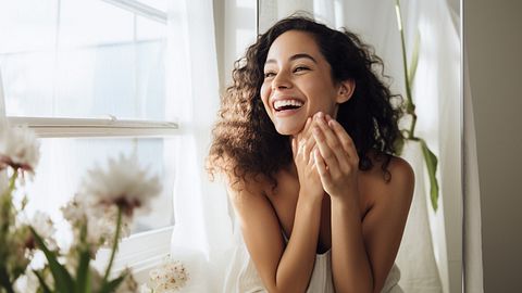 A close up of the lip and eye products from the company on a model in a fashion and beauty shoot.