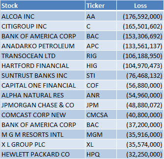 These calculations assume that John Paulson didn’t change his holdings during the past 4 months. We also don’t know his short positions that might offset these losses. These numbers reflect the losses in his long U.S. positions. We will update John Paulson’s holdings next week to reflect most recent 13F filing.