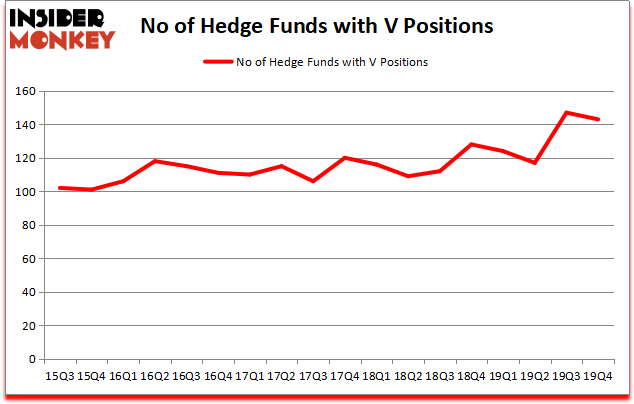 Visa Inc (NYSE:V) has experienced a decrease in support from the world’s most elite money managers lately. V was in 143 hedge funds’ portfolios at the end of December. There were 147 hedge funds in our database with V holdings at the end of the previous quarter. Our calculations also showed that V ranked 7th among the 30 most popular stocks among hedge funds (click for Q4 rankings and see the video below for Q3 rankings).