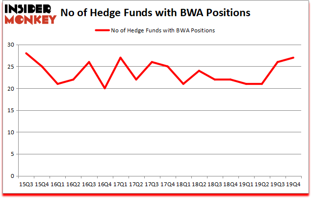 BorgWarner Inc. (NYSE:BWA) investors should be aware of an increase in enthusiasm from smart money lately. BWA was in 27 hedge funds’ portfolios at the end of December. There were 26 hedge funds in our database with BWA holdings at the end of the previous quarter. Our calculations also showed that BWA isn’t among the 30 most popular stocks among hedge funds (click for Q4 rankings and see the video at the end of this article for Q3 rankings).
