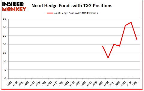 At first quarter’s end, a total of 23 of the hedge funds tracked by Insider Monkey were bullish on this stock, a change of -30% from the previous quarter. The graph below displays the number of hedge funds with bullish position in TXG over the last 23 quarters. So, let’s find out which hedge funds were among the top holders of the stock and which hedge funds were making big moves.