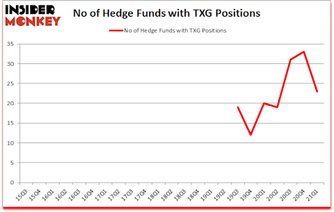 At first quarter’s end, a total of 23 of the hedge funds tracked by Insider Monkey were bullish on this stock, a change of -30% from the previous quarter. The graph below displays the number of hedge funds with bullish position in TXG over the last 23 quarters. So, let’s find out which hedge funds were among the top holders of the stock and which hedge funds were making big moves.