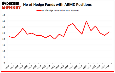 ABIOMED, Inc. (NASDAQ:ABMD) investors should pay attention to an increase in enthusiasm from smart money in recent months. ABIOMED, Inc. (NASDAQ:ABMD) was in 26 hedge funds’ portfolios at the end of the first quarter of 2021. The all time high for this statistic is 35. There were 23 hedge funds in our database with ABMD holdings at the end of December. Our calculations also showed that ABMD isn’t among the 30 most popular stocks among hedge funds (click for Q1 rankings).
