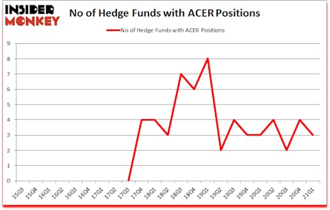 At Q1’s end, a total of 3 of the hedge funds tracked by Insider Monkey held long positions in this stock, a change of -25% from the previous quarter. By comparison, 3 hedge funds held shares or bullish call options in ACER a year ago. With hedge funds’ capital changing hands, there exists an “upper tier” of noteworthy hedge fund managers who were boosting their holdings considerably (or already accumulated large positions).
