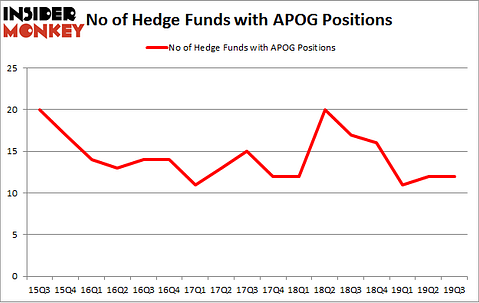 Heading into the fourth quarter of 2019, a total of 12 of the hedge funds tracked by Insider Monkey were bullish on this stock, a change of 0% from the previous quarter. The graph below displays the number of hedge funds with bullish position in APOG over the last 17 quarters. With hedgies’ positions undergoing their usual ebb and flow, there exists an “upper tier” of notable hedge fund managers who were boosting their stakes significantly (or already accumulated large positions).