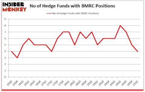 At the end of March, a total of 4 of the hedge funds tracked by Insider Monkey held long positions in this stock, a change of -20% from the previous quarter. By comparison, 6 hedge funds held shares or bullish call options in BMRC a year ago. So, let’s see which hedge funds were among the top holders of the stock and which hedge funds were making big moves.