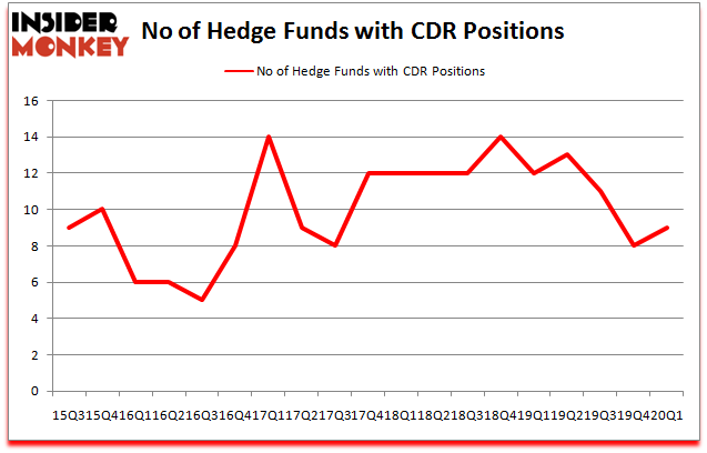 At Q1’s end, a total of 9 of the hedge funds tracked by Insider Monkey were bullish on this stock, a change of 13% from the previous quarter. The graph below displays the number of hedge funds with bullish position in CDR over the last 18 quarters. With the smart money’s positions undergoing their usual ebb and flow, there exists an “upper tier” of key hedge fund managers who were upping their holdings substantially (or already accumulated large positions).