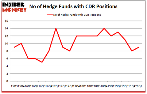 At Q1’s end, a total of 9 of the hedge funds tracked by Insider Monkey were bullish on this stock, a change of 13% from the previous quarter. The graph below displays the number of hedge funds with bullish position in CDR over the last 18 quarters. With the smart money’s positions undergoing their usual ebb and flow, there exists an “upper tier” of key hedge fund managers who were upping their holdings substantially (or already accumulated large positions).