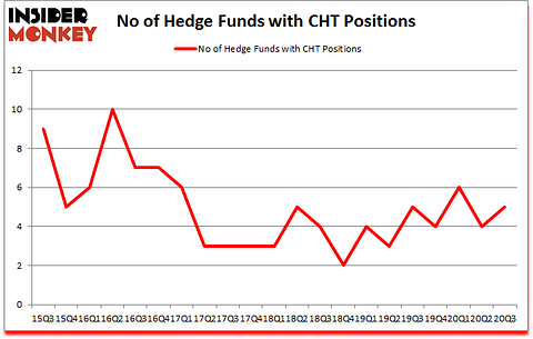 At the end of September, a total of 5 of the hedge funds tracked by Insider Monkey held long positions in this stock, a change of 25% from one quarter earlier. By comparison, 5 hedge funds held shares or bullish call options in CHT a year ago. With hedge funds’ capital changing hands, there exists an “upper tier” of noteworthy hedge fund managers who were upping their stakes considerably (or already accumulated large positions).