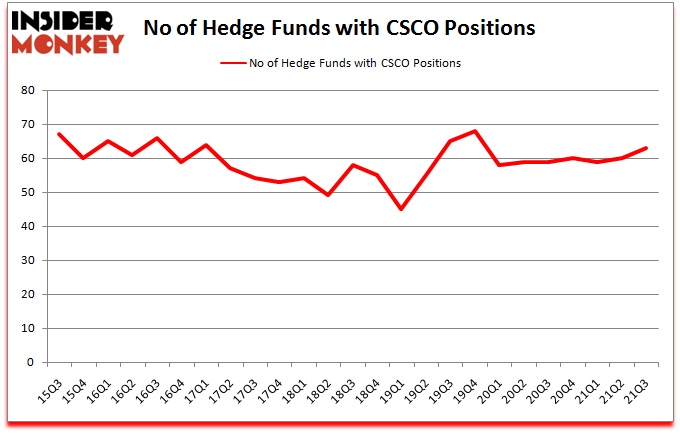 Cisco Systems, Inc. (NASDAQ:CSCO) investors should be aware of an increase in hedge fund interest in recent months. Cisco Systems, Inc. (NASDAQ:CSCO) was in 63 hedge funds’ portfolios at the end of September. The all time high for this statistic is 68. Our calculations also showed that CSCO isn’t among the 30 most popular stocks among hedge funds (click for Q3 rankings).