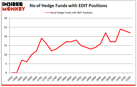 Is Editas Medicine, Inc. (NASDAQ:EDIT) going to take off soon? The smart money was selling. The number of long hedge fund bets decreased by 1 lately. Editas Medicine, Inc. (NASDAQ:EDIT) was in 22 hedge funds’ portfolios at the end of the third quarter of 2021. The all time high for this statistic is 24. Our calculations also showed that EDIT isn’t among the 30 most popular stocks among hedge funds (click for Q2 rankings). There were 23 hedge funds in our database with EDIT positions at the end of the second quarter.