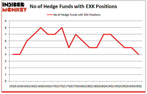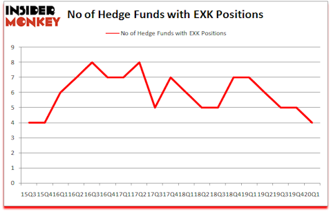 At the end of the first quarter, a total of 4 of the hedge funds tracked by Insider Monkey were bullish on this stock, a change of -20% from the fourth quarter of 2019. The graph below displays the number of hedge funds with bullish position in EXK over the last 18 quarters. With hedgies’ capital changing hands, there exists a select group of notable hedge fund managers who were adding to their stakes significantly (or already accumulated large positions).