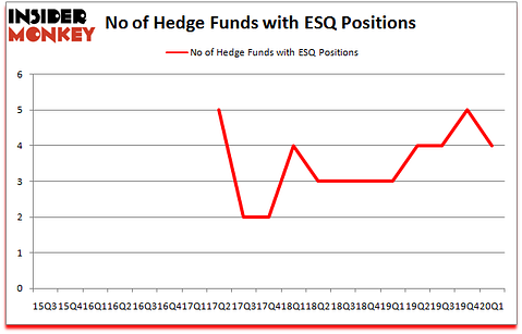 Heading into the second quarter of 2020, a total of 4 of the hedge funds tracked by Insider Monkey held long positions in this stock, a change of -20% from the previous quarter. The graph below displays the number of hedge funds with bullish position in ESQ over the last 18 quarters. So, let’s review which hedge funds were among the top holders of the stock and which hedge funds were making big moves.