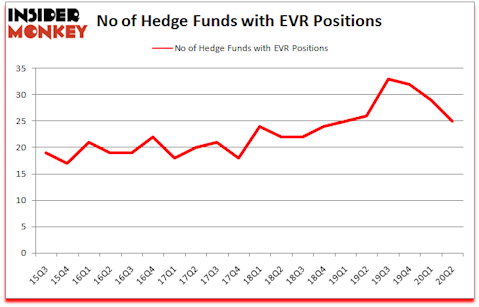 At the end of June, a total of 25 of the hedge funds tracked by Insider Monkey were long this stock, a change of -14% from the previous quarter. The graph below displays the number of hedge funds with bullish position in EVR over the last 20 quarters. With hedgies’ sentiment swirling, there exists a few notable hedge fund managers who were boosting their holdings substantially (or already accumulated large positions).