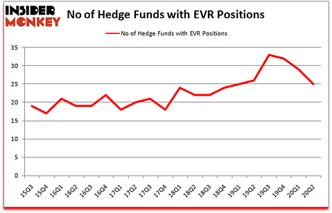 At the end of June, a total of 25 of the hedge funds tracked by Insider Monkey were long this stock, a change of -14% from the previous quarter. The graph below displays the number of hedge funds with bullish position in EVR over the last 20 quarters. With hedgies’ sentiment swirling, there exists a few notable hedge fund managers who were boosting their holdings substantially (or already accumulated large positions).