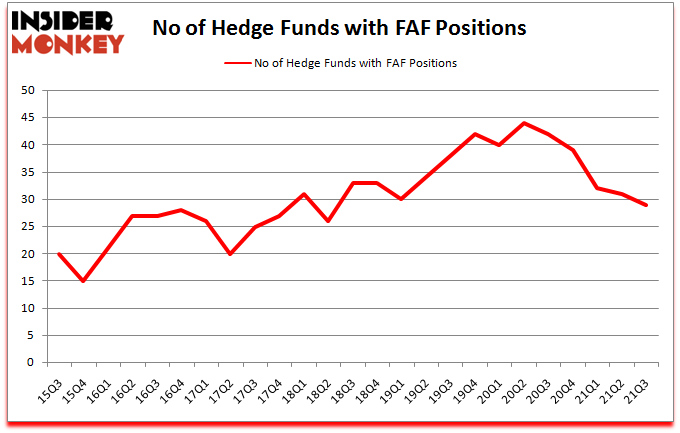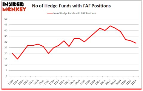 Heading into the fourth quarter of 2021, a total of 29 of the hedge funds tracked by Insider Monkey were bullish on this stock, a change of -6% from the previous quarter. Below, you can check out the change in hedge fund sentiment towards FAF over the last 25 quarters. With hedge funds’ positions undergoing their usual ebb and flow, there exists a select group of noteworthy hedge fund managers who were increasing their holdings meaningfully (or already accumulated large positions).