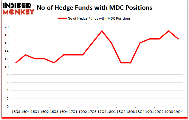 In these volatile markets we scrutinize hedge fund filings to get a reading on which direction each stock might be going. The financial regulations require hedge funds and wealthy investors that exceeded the $100 million equity holdings threshold to file a report that shows their positions at the end of every quarter. Even though it isn’t the intention, these filings to a certain extent level the playing field for ordinary investors. The latest round of 13F filings disclosed the funds’ positions on December 31st. We at Insider Monkey have made an extensive database of more than 835 of those established hedge funds and famous value investors’ filings. In this article, we analyze how these elite funds and prominent investors traded M.D.C. Holdings, Inc. (NYSE:MDC) based on those filings.