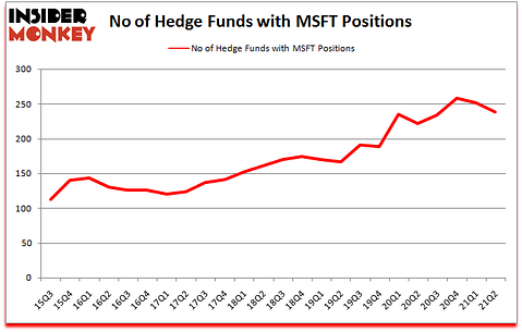 Microsoft Corporation (NASDAQ:MSFT) shareholders have witnessed a decrease in activity from the world’s largest hedge funds in recent months. Microsoft Corporation (NASDAQ:MSFT) was in 238 hedge funds’ portfolios at the end of the second quarter of 2021. The all time high for this statistic is 258. Our calculations also showed that MSFT ranked #3 among the 30 most popular stocks among hedge funds (click for Q2 rankings).