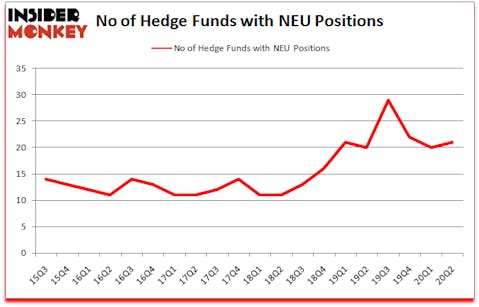 At the end of the second quarter, a total of 21 of the hedge funds tracked by Insider Monkey were bullish on this stock, a change of 5% from the previous quarter. Below, you can check out the change in hedge fund sentiment towards NEU over the last 20 quarters. So, let’s review which hedge funds were among the top holders of the stock and which hedge funds were making big moves.