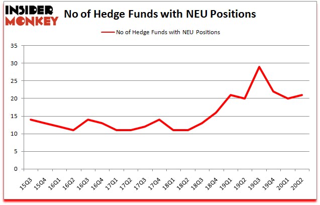 At the end of the second quarter, a total of 21 of the hedge funds tracked by Insider Monkey were bullish on this stock, a change of 5% from the previous quarter. Below, you can check out the change in hedge fund sentiment towards NEU over the last 20 quarters. So, let’s review which hedge funds were among the top holders of the stock and which hedge funds were making big moves.