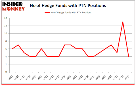 At the end of the third quarter, a total of 4 of the hedge funds tracked by Insider Monkey held long positions in this stock, a change of -69% from one quarter earlier. The graph below displays the number of hedge funds with bullish position in PTN over the last 21 quarters. So, let’s examine which hedge funds were among the top holders of the stock and which hedge funds were making big moves.