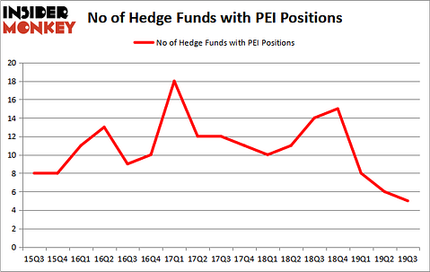 At Q3’s end, a total of 5 of the hedge funds tracked by Insider Monkey held long positions in this stock, a change of -17% from the previous quarter. The graph below displays the number of hedge funds with bullish position in PEI over the last 17 quarters. So, let’s examine which hedge funds were among the top holders of the stock and which hedge funds were making big moves.