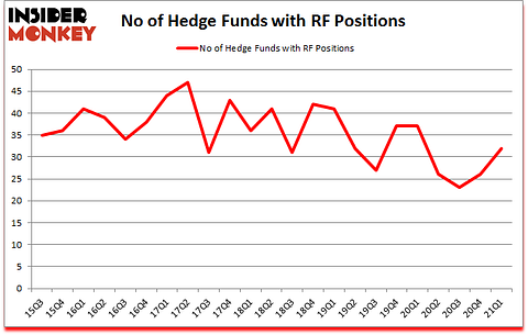 At Q1’s end, a total of 32 of the hedge funds tracked by Insider Monkey were long this stock, a change of 23% from one quarter earlier. The graph below displays the number of hedge funds with bullish position in RF over the last 23 quarters. So, let’s review which hedge funds were among the top holders of the stock and which hedge funds were making big moves.